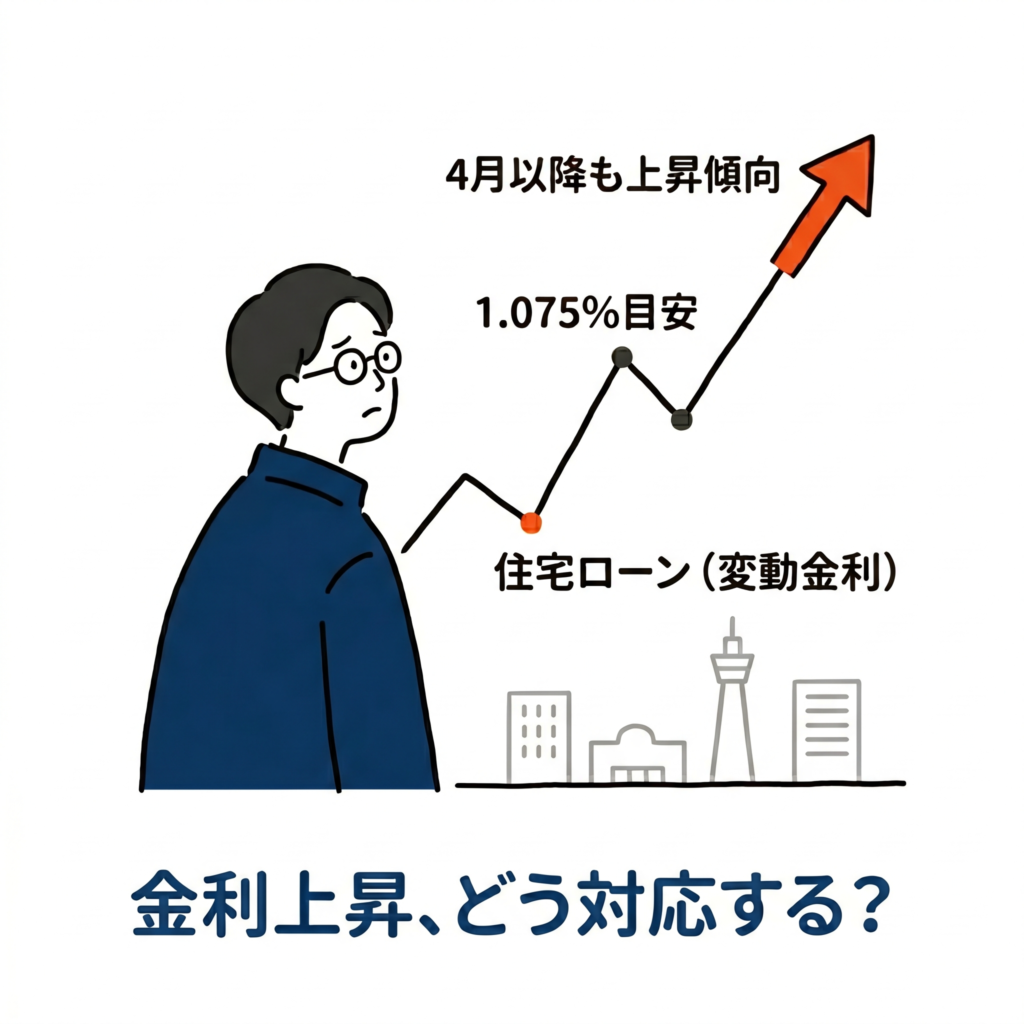 2026年現在、変動金利は明らかに上昇傾向です。 浜松エリアの地方銀行を例に挙げると、静岡銀行は3月の段階で金利が上がりました。他の多くの金融機関も、4月から段階的に金利を引き上げています。今、実際に住宅ローンを組む際の変動金利は、およそ1.075%前後が目安となっています。