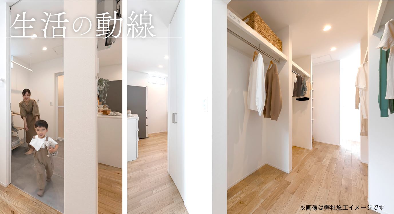 帰宅動線や家事動線・収納計画といった暮らしやすさを大切にした設計で、