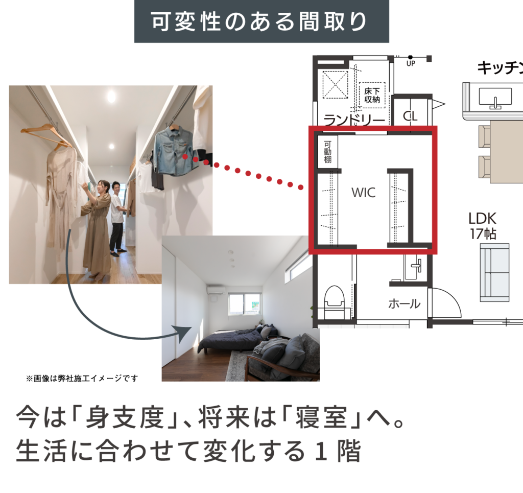帰宅動線や家事動線といった暮らしやすさと、生活に合わせて可変する間取りを採用した自由設計の家を見学してみませんか?