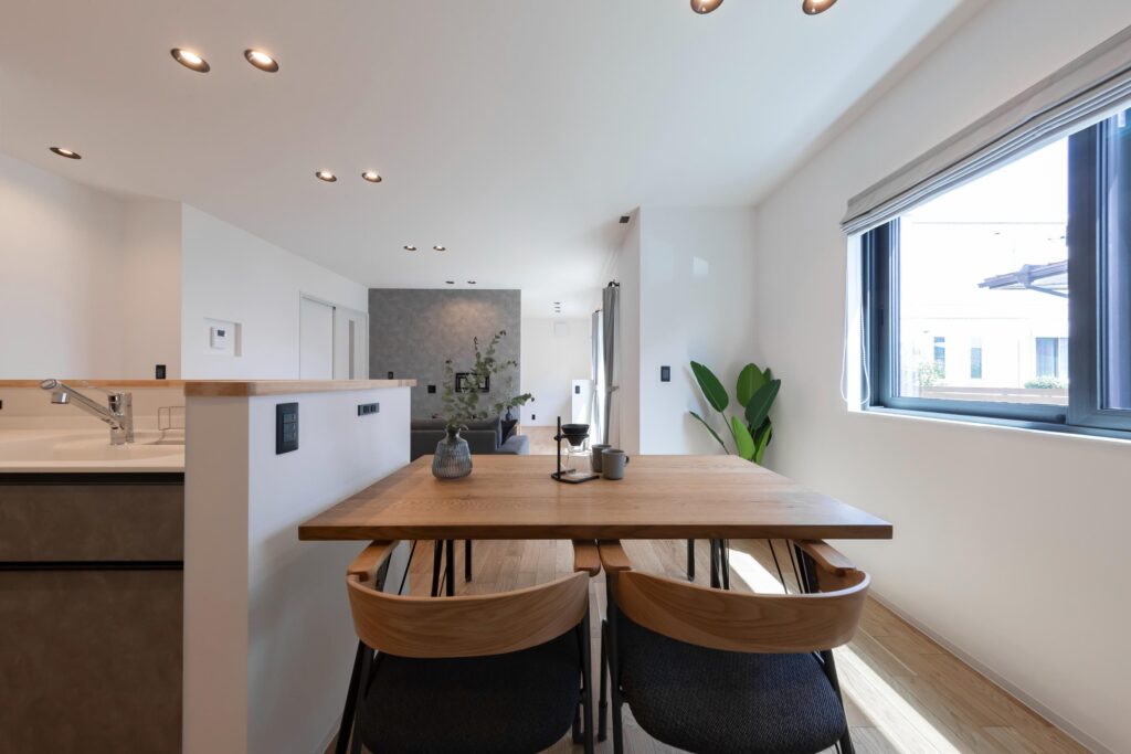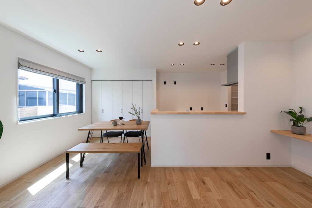 たくさんの窓と照明でとても明るく開放感のあるLDK