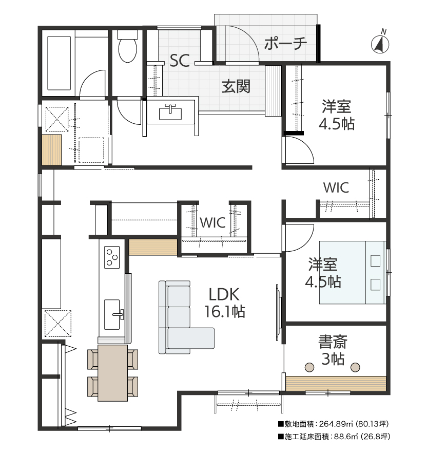 玄関入って右手はSC。腰をかけるスペースもあり広々