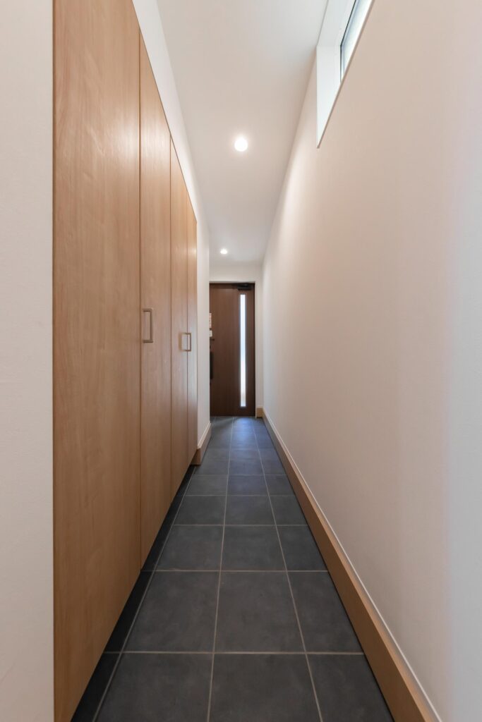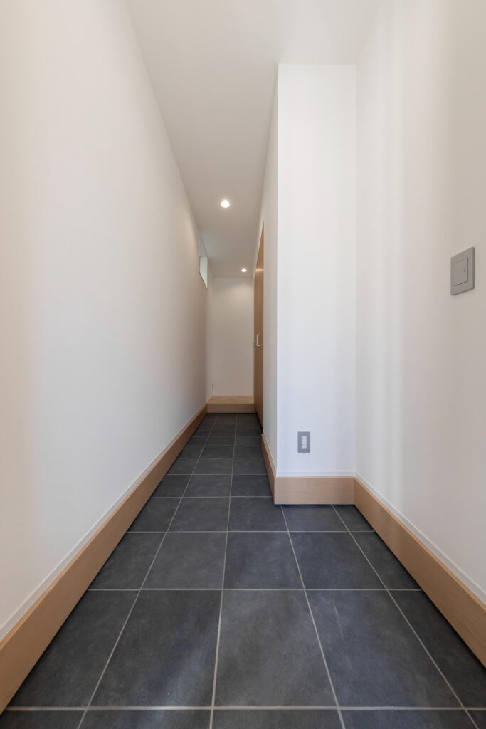 ランドリー空間は2階廊下にオープンで設けることで大空間を実現