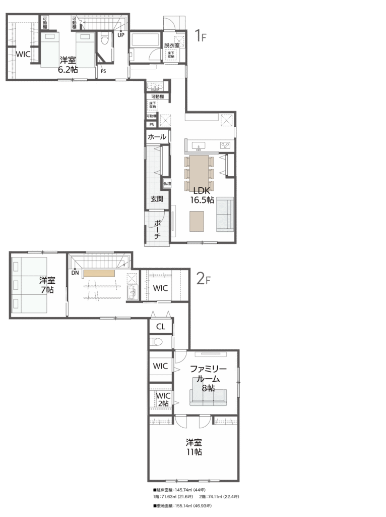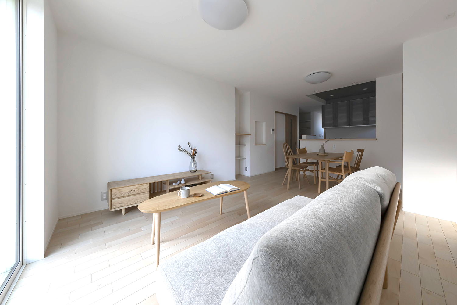 L字型の敷地の特徴を生かし、家族が集まるリビングは日当たりのよい場所に。
