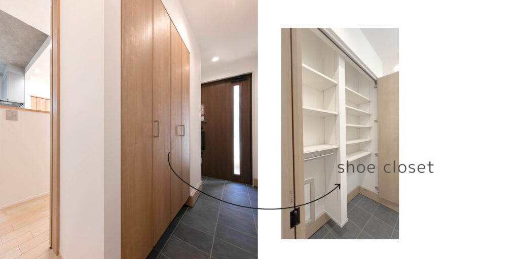 収納が少ないことが悩みだったため、収納は必要箇所に点在して配置。それぞれが使いやすい収納計画が実現しました。