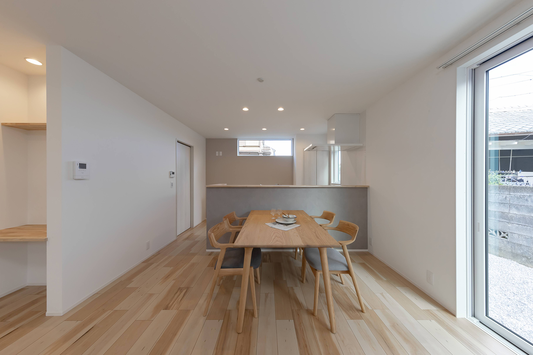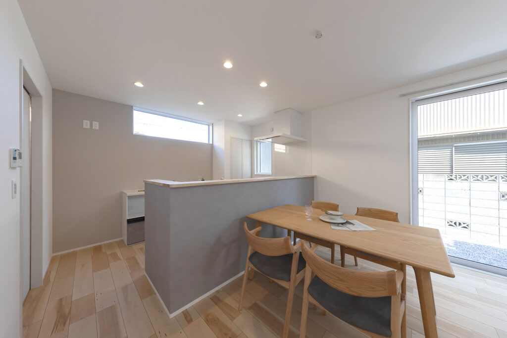 自然光が差し込む明るいダイニングスペース。ダイニング背面にはスタディスペースもありお子様の学習を見守りながら家事ができます。