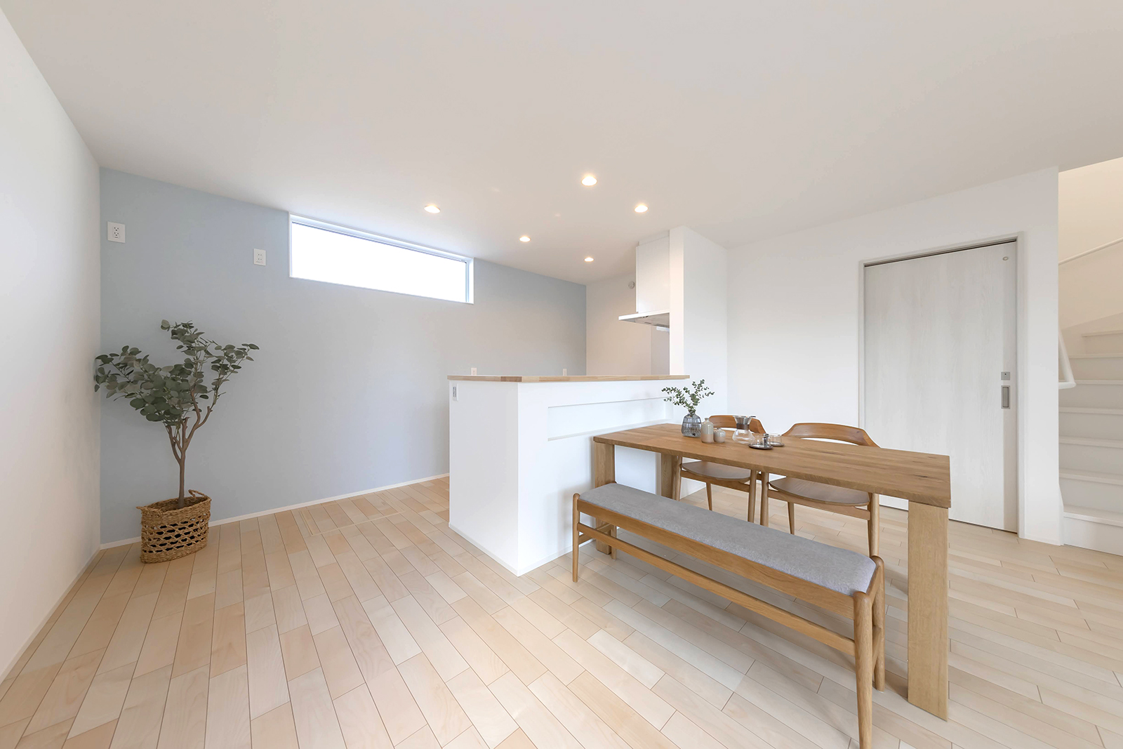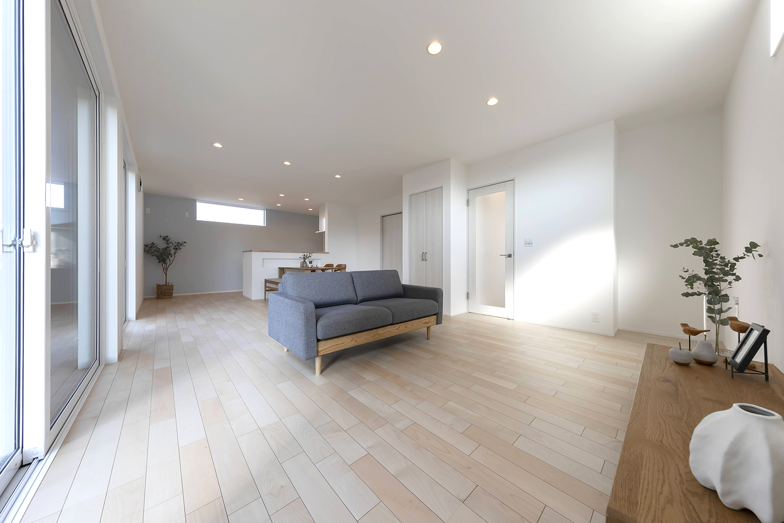 南側からの光が心地よく入る大空間のLDKは、家族が集まりやすい開放的なつくりで、広さとゆとりを感じられる空間です。