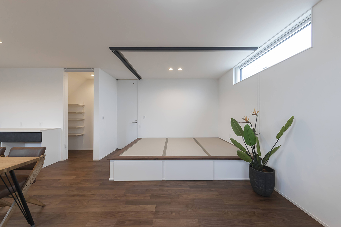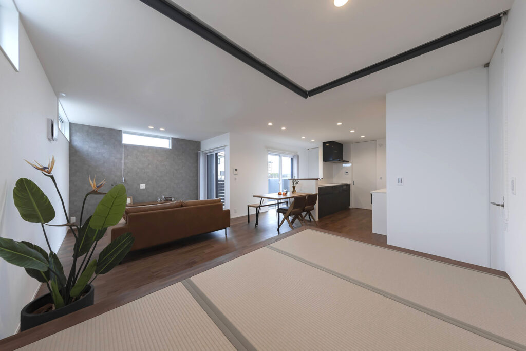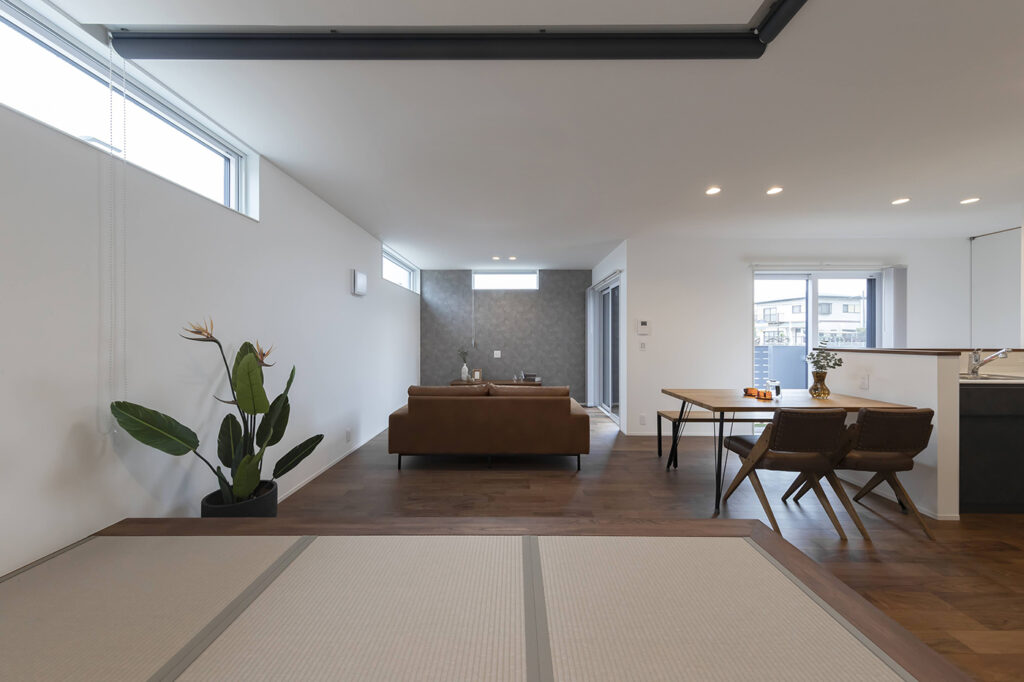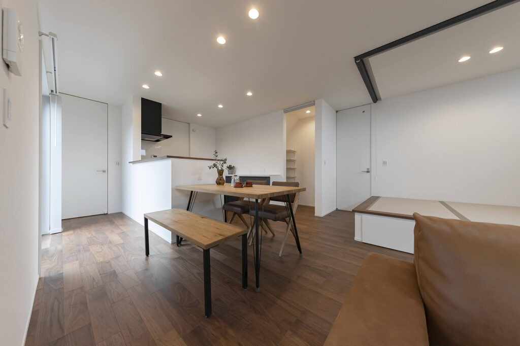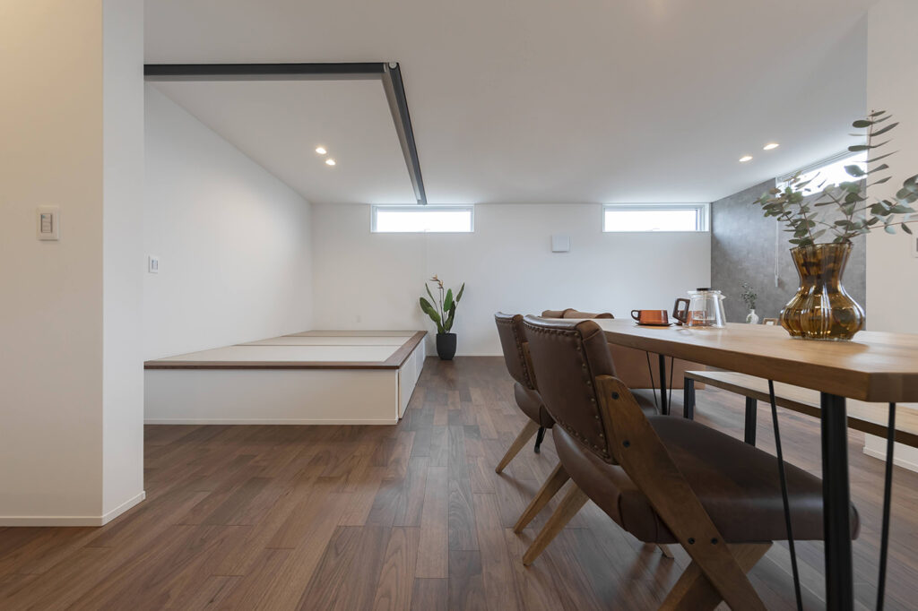 仕切れる畳空間。くつろぎ時間にも、お子さまの遊び場にも便利な小上がり畳コーナー。畳下には収納を設け、リビングはすっきり。