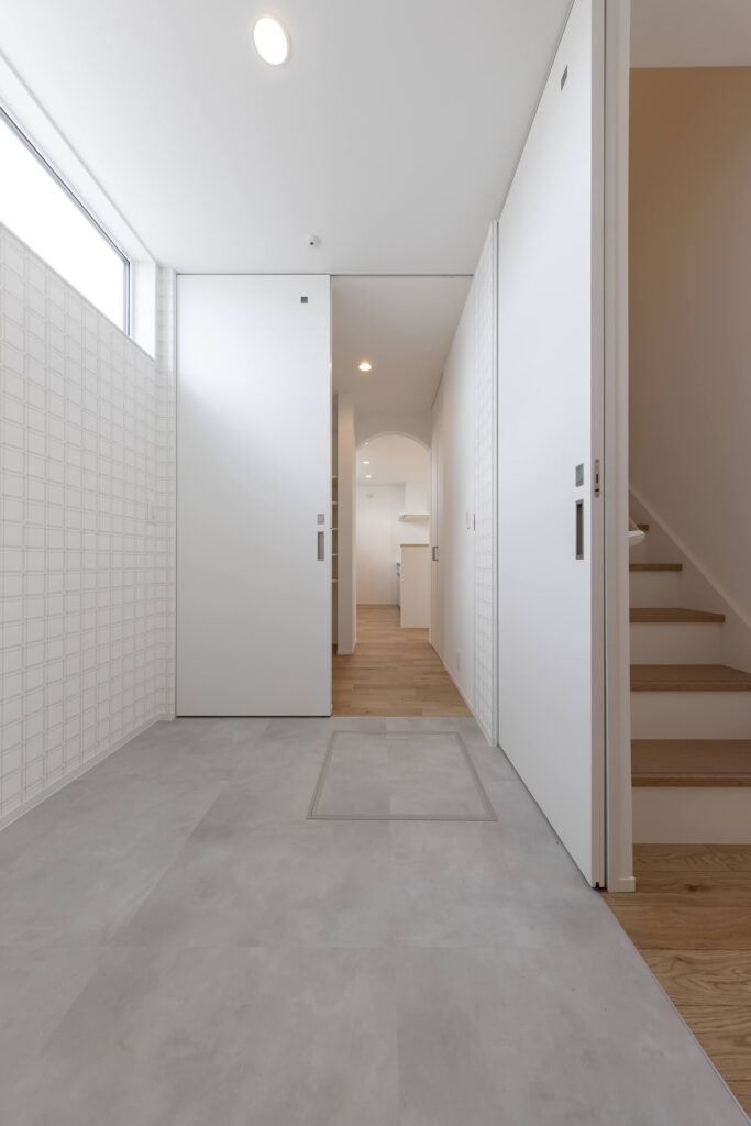 シンプルで洗練された中にも可愛さを感じるデザインの玄関スペース
