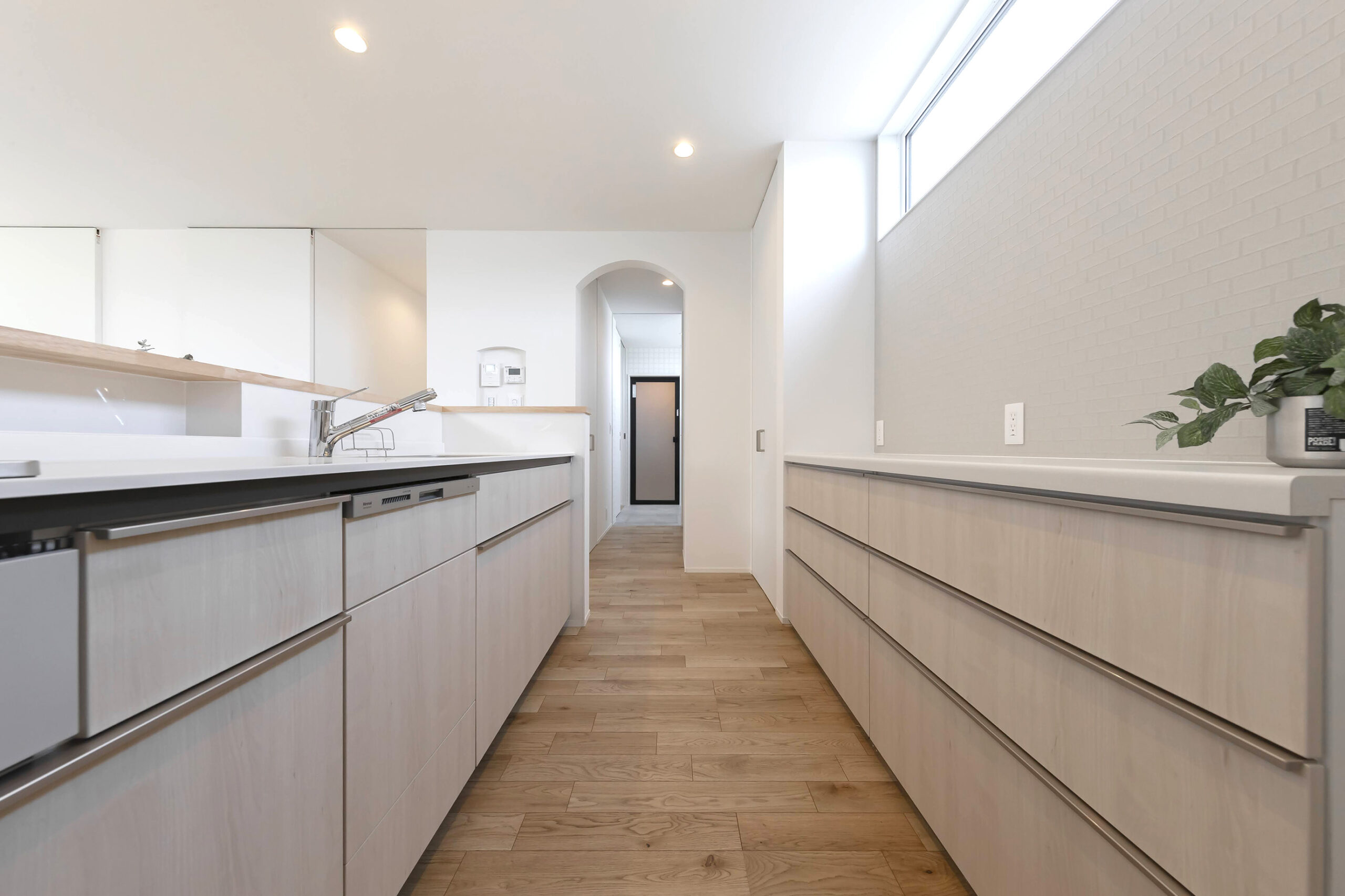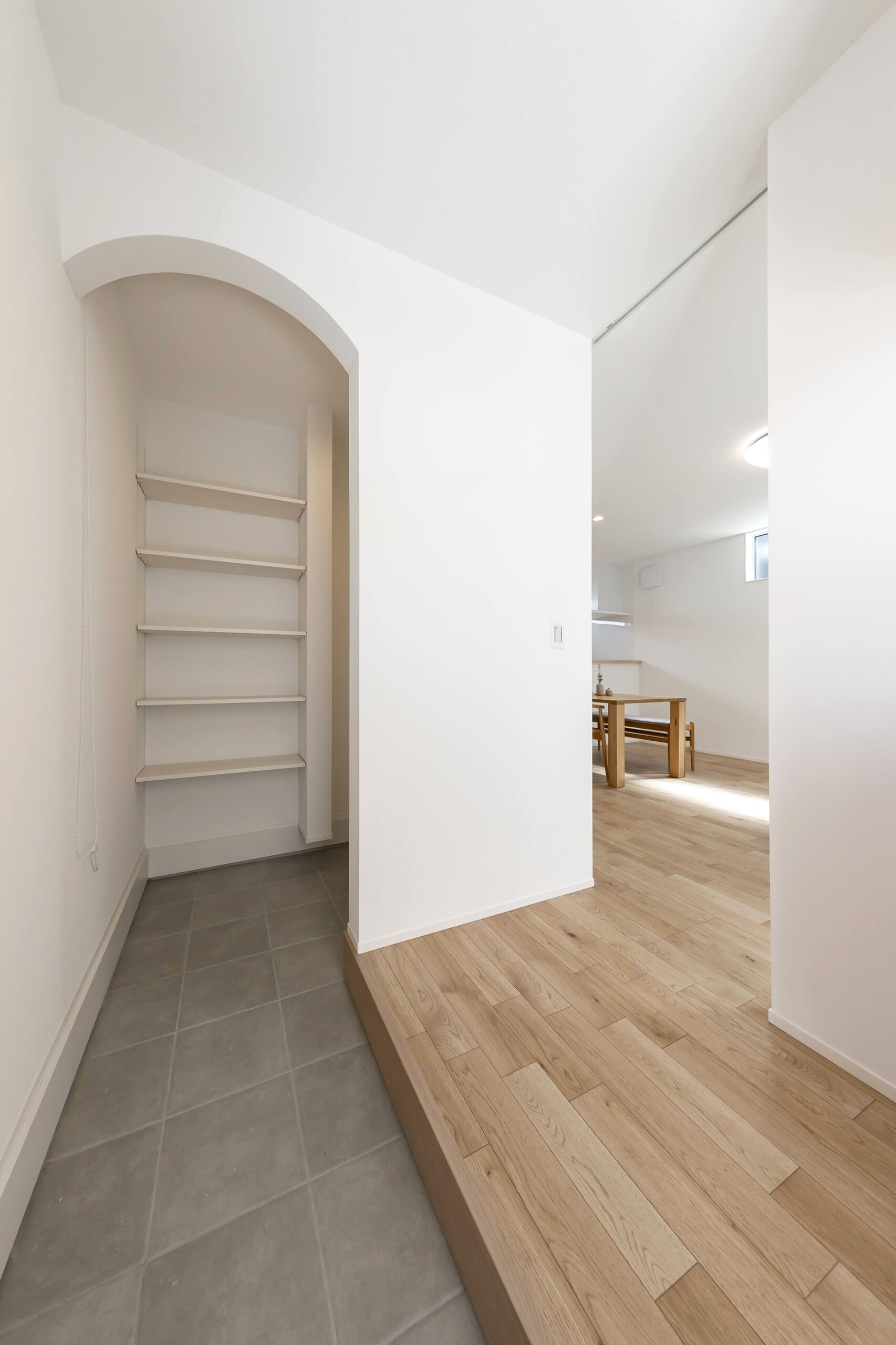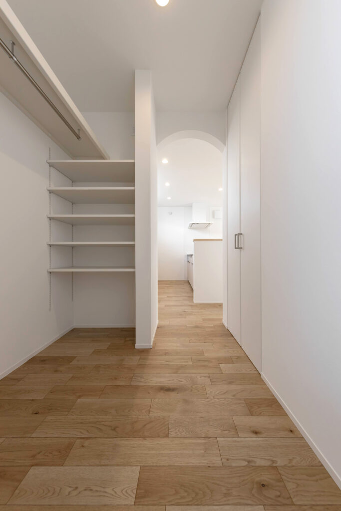 キッチンにつながる出入り口はアーチ形状で可愛く
