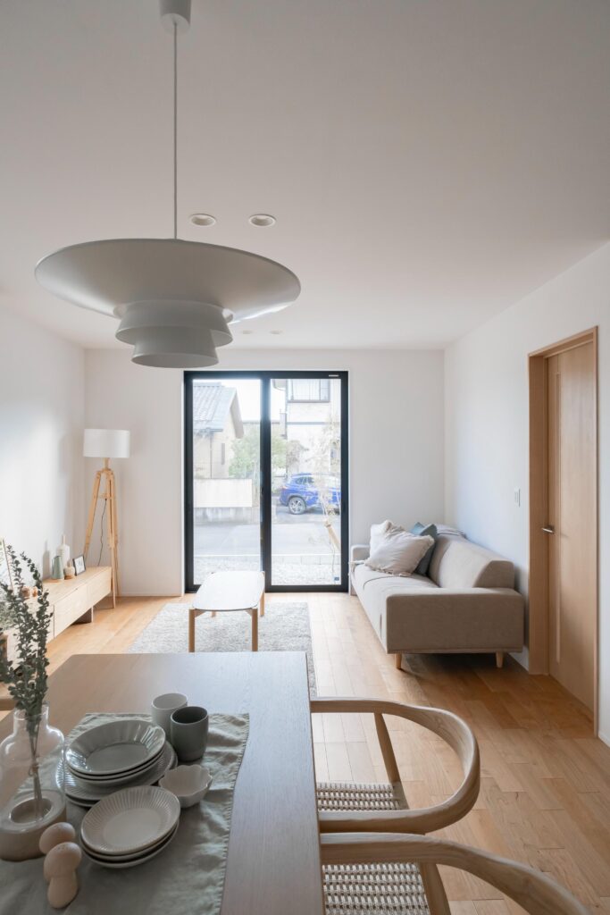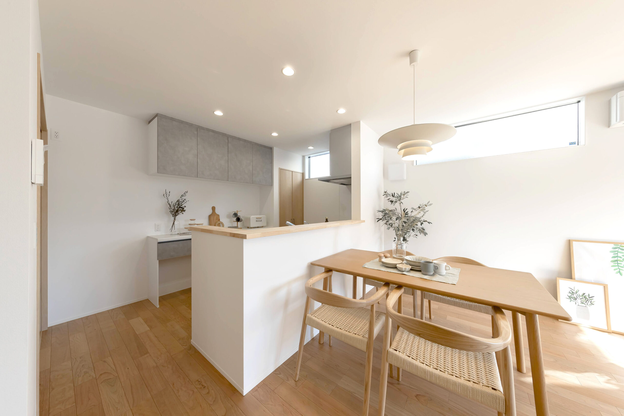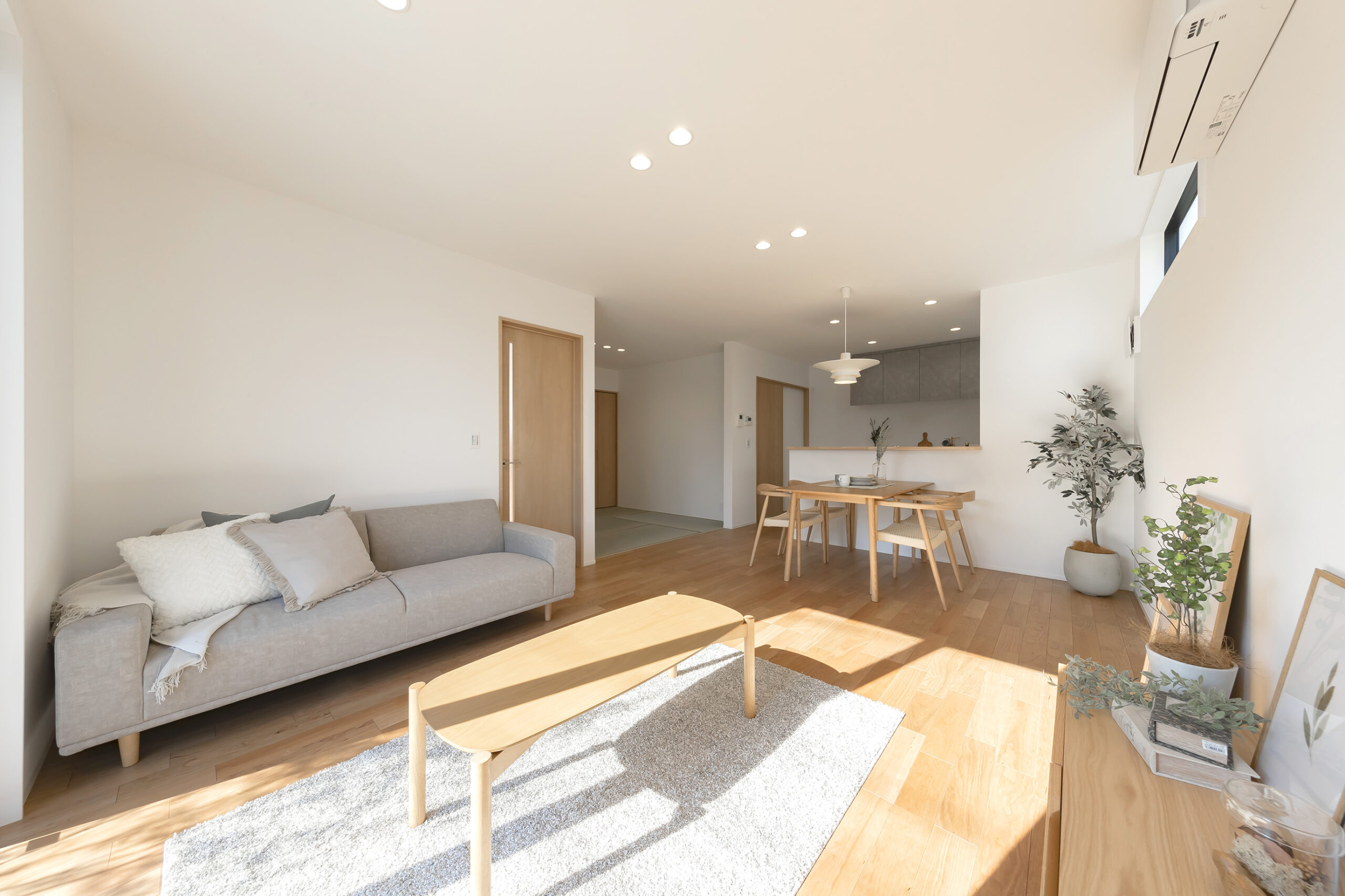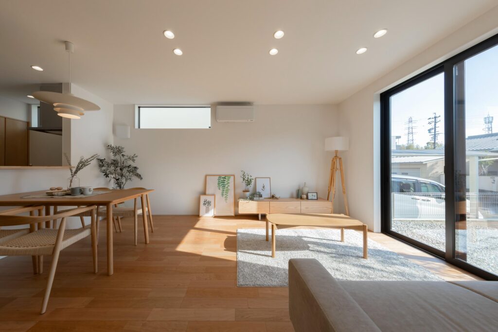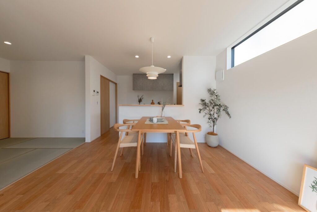 階段を上がってすぐのスペースを広く取り、大きな窓からは光も取り入れられ、室内干しにも最適な空間に。バルコニーも横に広く、晴れた日の外干しや布団干しにも使えます。